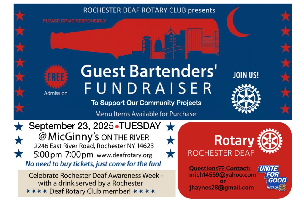 ROCHESTER DEAF ROTARY CLUB PRESENTS GUEST BARTENDERS’ FUNDRAISER